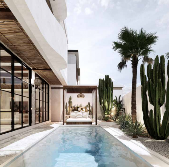 — Частный бассейн с зоной отдыха, шезлонгами и зонтом для максимального комфорта.