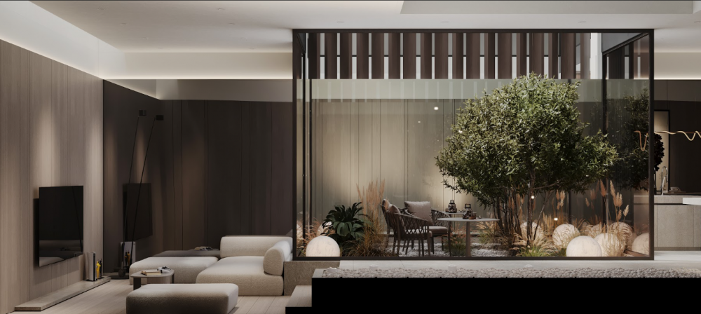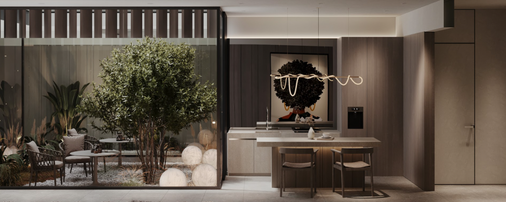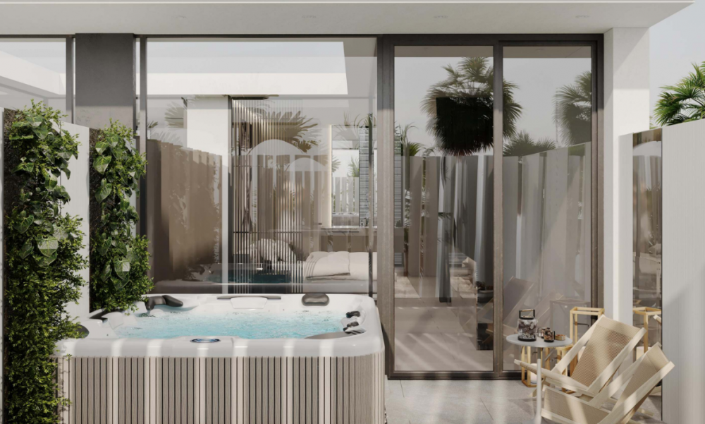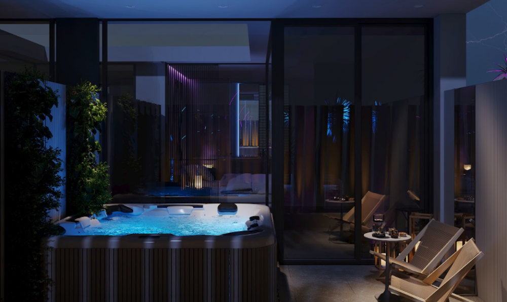 Комплекс состоит из зданий, расположенных каскадом, с красивым атриумом. Здесь есть длинная беговая и велосипедная дорожка длиной 500 метров. Для работы можно использовать коворкинг Oasis, а также студию для записи подкастов и музыки. Вам доступны современный тренажерный зал, зона для йоги и спа, где есть сауна, джакузи и массажные услуги. Также есть большой бассейн площадью 1 300 квадратных метров с водопадами и разными уровнями глубины. В некоторых апартаментах предусмотрены приватные бассейны и просторные террасы.