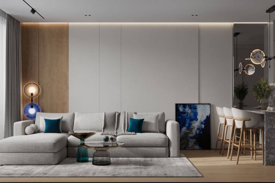 — Уникальный дизайн в сдержанных бело-серых тонах с вкраплениями лазоревых и карамельных оттенках. Отделка натуральным камнем и темным деревом с обилием стеклянных элементов. Интерьеры дополняют панорамные окна, просторные балконы и террасы.