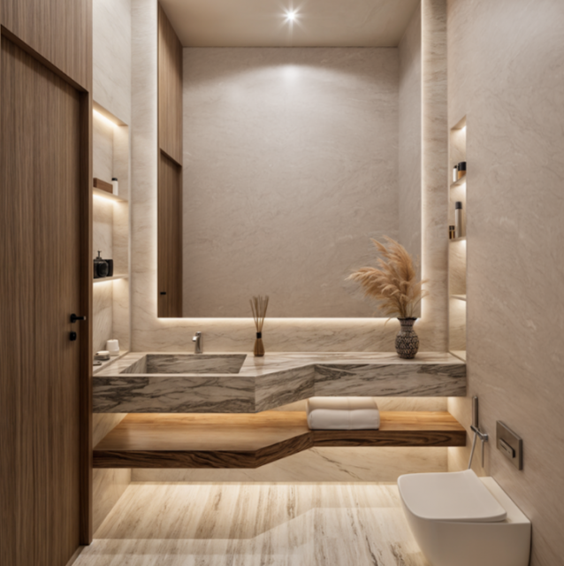 — используются премиальные материалы: мрамор, натуральное дерево, армированный бетон,