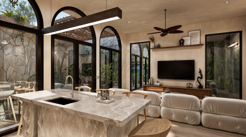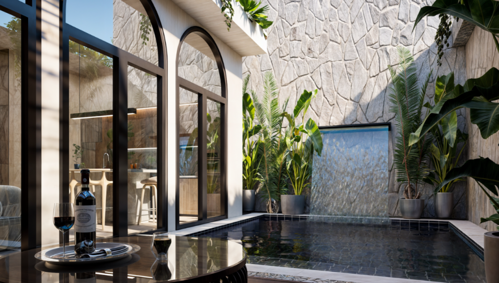 — каждая вилла оснащена приватным бассейном, зоной барбекю и лаунджем на крыше с видом на океан,